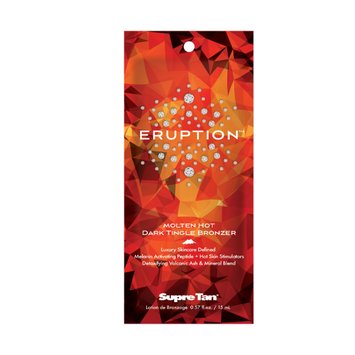 Feel the heat! Eruption is a fiery tingle bronzer designed for experienced tanners. This molten blend stimulates circulation while delivering intense, dark results you can see and feel.