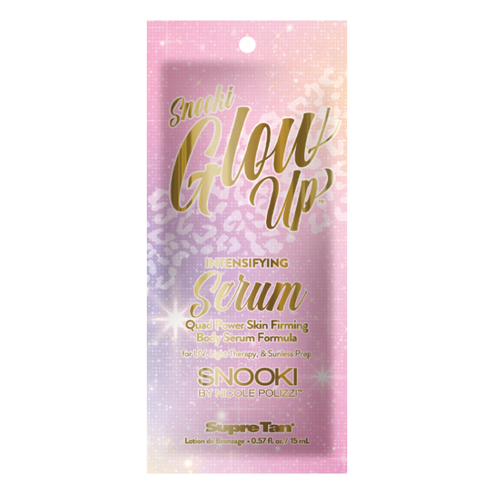 Boost your bronzing potential! Snooki Glow Up Intensifying Serum helps skin produce melanin for a bold, radiant tan while hydrating deeply for silky smooth results.